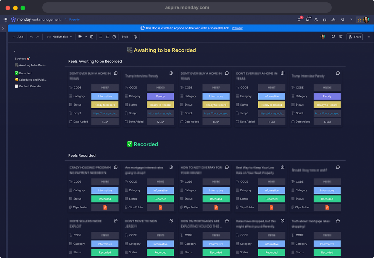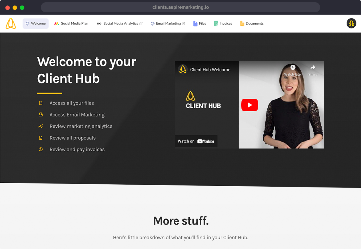 We've built and integrated platforms specifically for you. Our Client Hub is where all your administrative and financial documents are stored, along with any important links associated with our services. Additionally, our Project Management system is available for you to monitor the progress of your content. Your Monday.com board will notify you of any updates and provide all the necessary information about your upcoming video shoots. Your designated Account Manager will guide you through the simple steps for seamless onboarding.